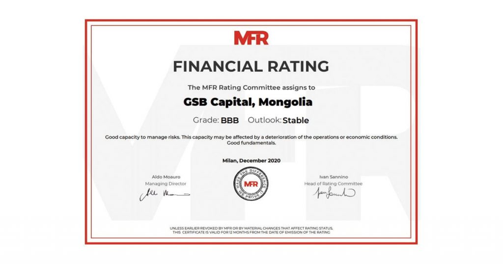 “Жи Эс Би Капитал ББСБ” MicroFinanza Rating S.R.L. агентлагаас “BBB” үнэлгээ