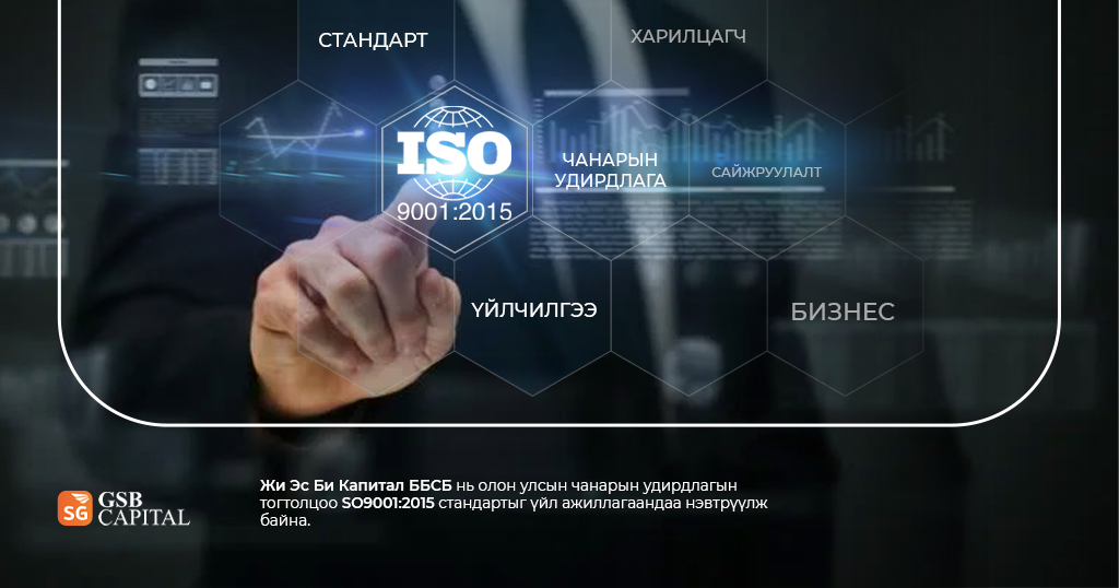 “Жи Эс Би Капитал ББСБ” ХХК нь ISO9001:2015 стандартыг үйл ажиллагаандаа нэвтрүүлж байна.
