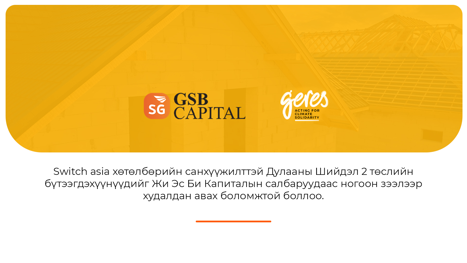GSB Capital NBFI signed a Memorandum of Understanding with the Switch of Air Pollution in Mongolian Cities project, funded by the European Union’s Switch-Asia II Programme.This Memorandum of Understanding aims to increase access to financing energy-efficient insulation solutions for detached houses developed within the Switch of Air Pollution in Mongolian Cities project. Thus, the households will be able to save energy, reduce greenhouse gas emissions, and contribute to the fight against climate change.